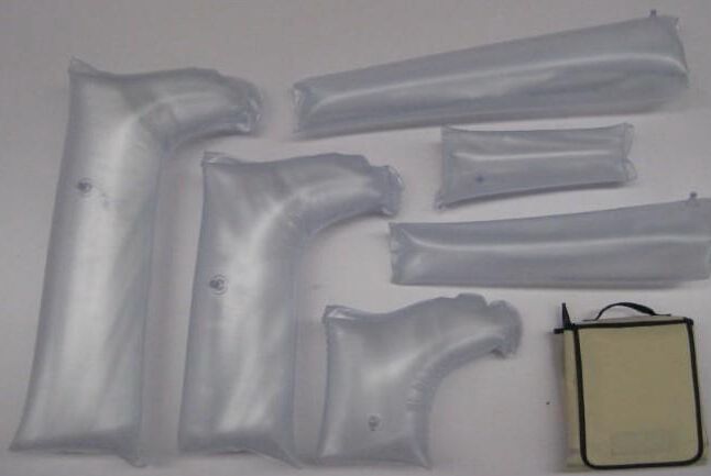 充氣夾板的氣囊放氣只需推拉閥門,經(jīng)過簡單培訓(xùn)即可使用。它可被X射線穿透,是理想的急救用品。 充氣夾板可通過縮減尺寸用于兒童(半身或全腿),拉鏈便于解脫。